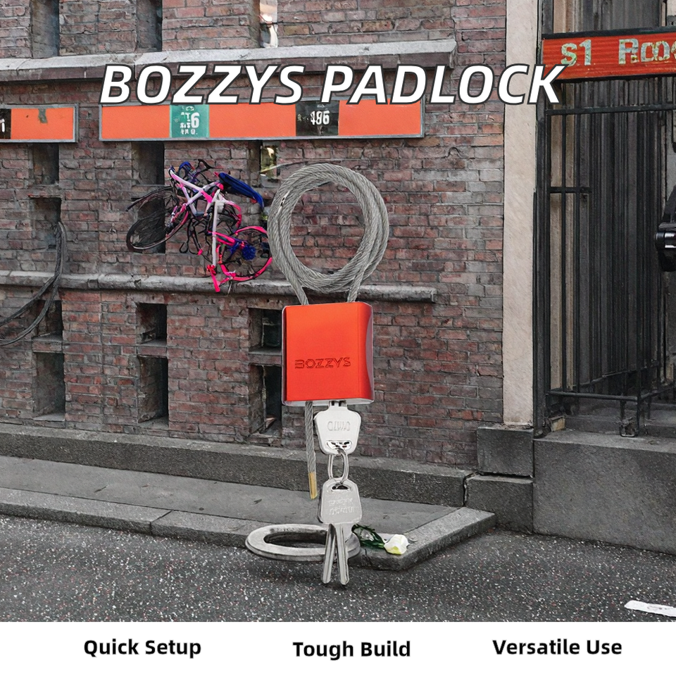 BOZZYS Adjustable Steel Cable Padlock with 3 Red Aluminum Keys Easy Installation for Bikes Gates Valves Outdoor Equipment