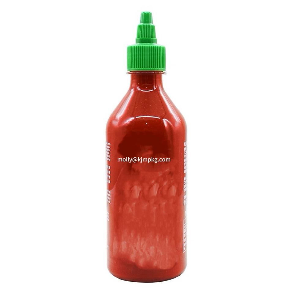Bouteille de sauce chili piquante Sira Cha en plastique PET sans BPA de 250 ml, ronde, facile à presser, avec bouchon à vis