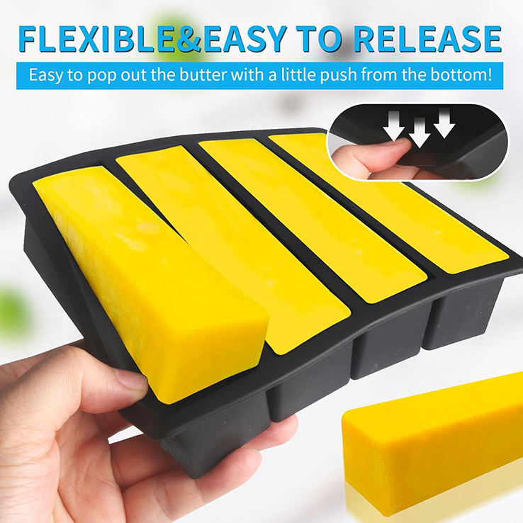 Bac à glaçons en silicone durable empilable à 4 cavités sans BPA grand beurre pour whisky et cocktail