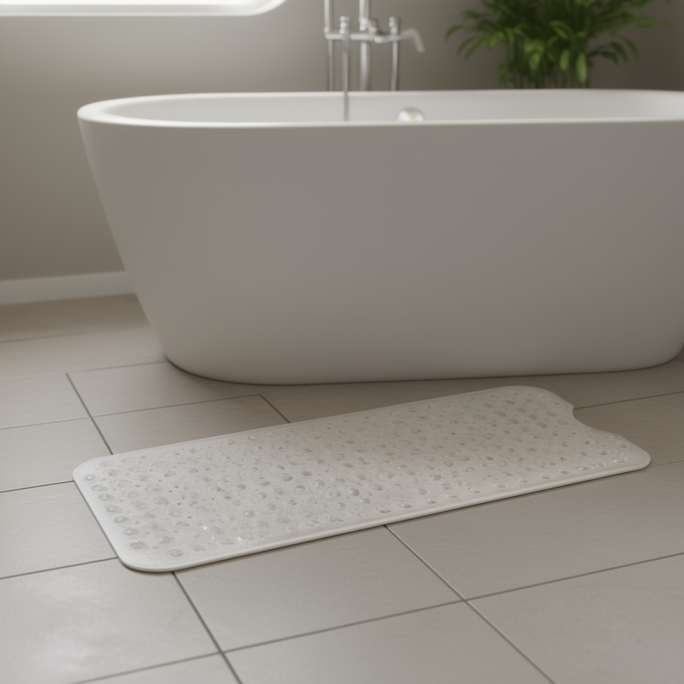 Tapis de bain antidérapant blanc rectangulaire avec ventouses, sans BPA, fonction massage pour baignoire