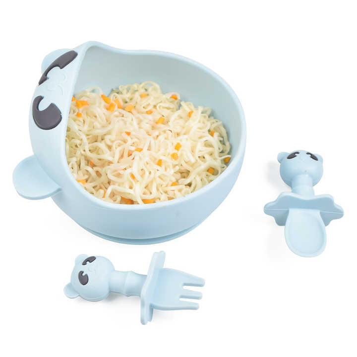 Bol et cuillère en silicone pour bébé en forme d'animal mignon et antidérapant sans BPA pour les repas des enfants et des tout-petits