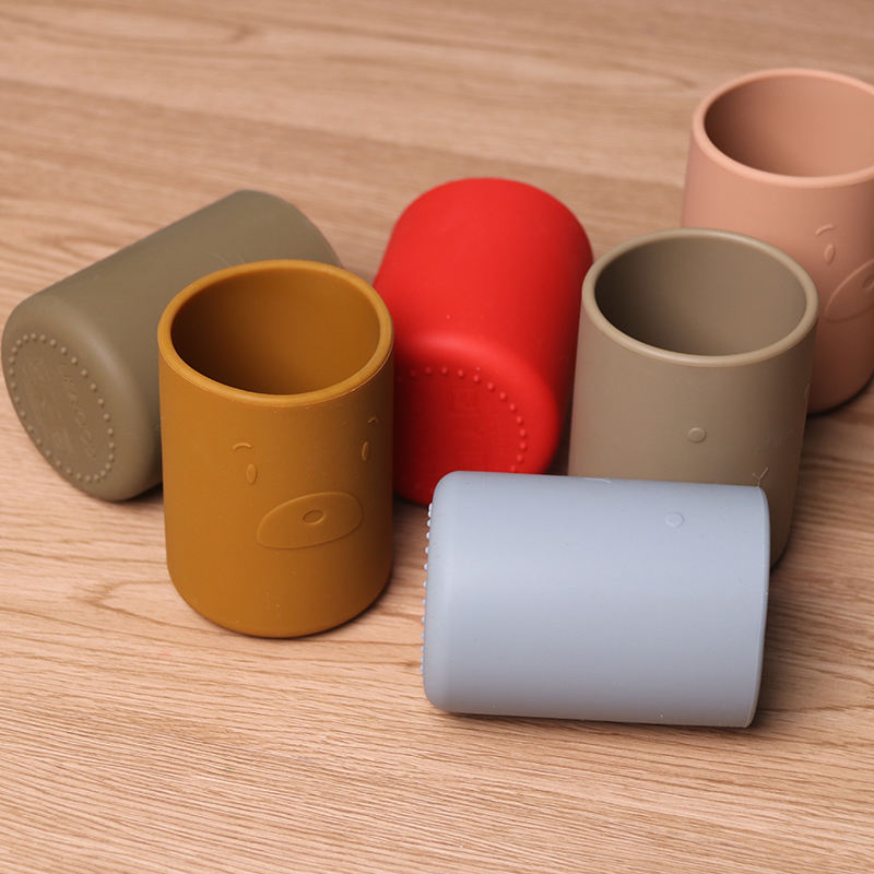 Gobelets en silicone réutilisables sans BPA, gobelet à bec pour bébé avec poignée et prise en main facile pour l'apprentissage du sevrage des tout-petits