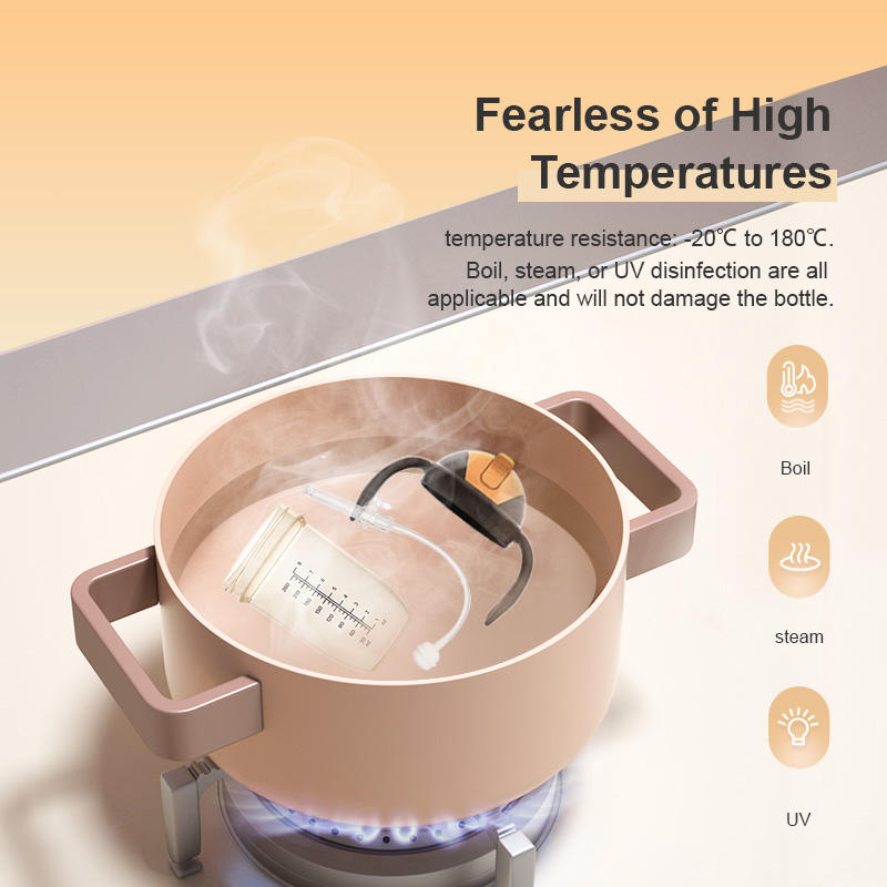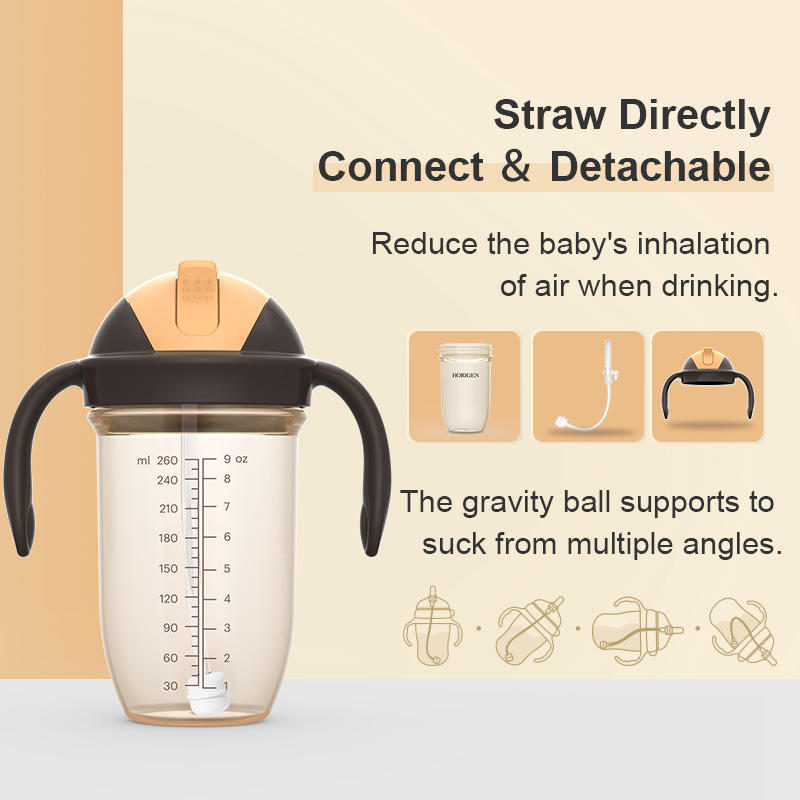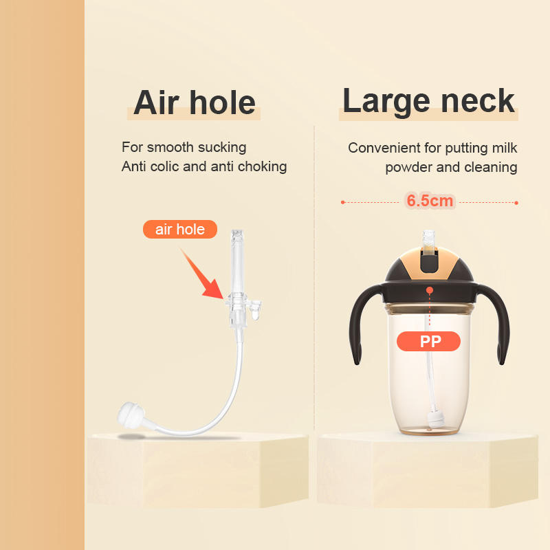 Biberon anti-colique 260 ml sans BPA avec poignée en PP, tétine interchangeable et pailles – Promotion