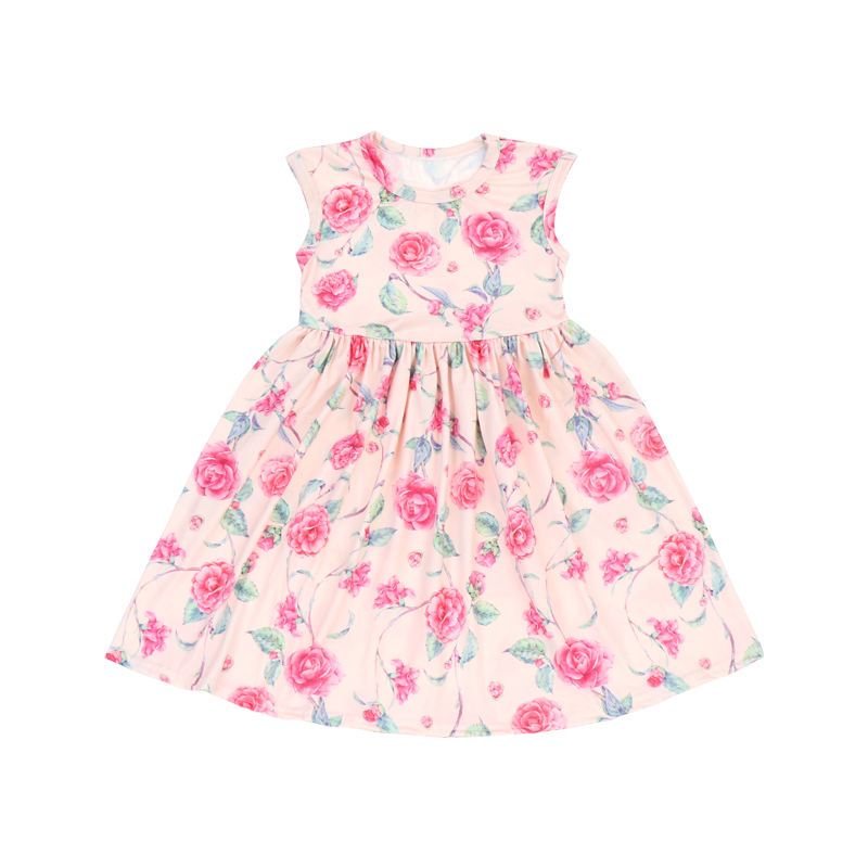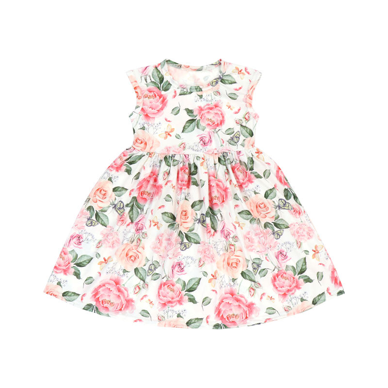 Robe sans manches pour filles en soie de lait rose à fleurs, 95% polyester, 5% élasthanne, extensible, style A, décontractée, pour enfants, BQA-188