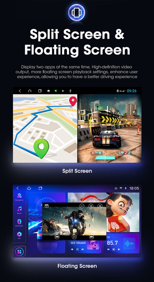 Fonction:SDK, GPS, Stéréo, SANS MAINS, TPMS, Télécommande, Amplificateur, OBD2, DSP, CarPlay, DVB +, Lien de miroir, Android auto, Image dans l'image, Microphone intégré, Écran partagé, Gestionnaire de fichiers, Couple Pro, Hi-Res Audio, Volant de voiture de Contrôle, Haut-parleur intégré