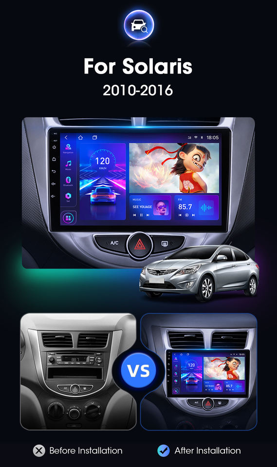 Type de texte:Autoradio pour Hyundai Solaris (Accent) 2010-2019