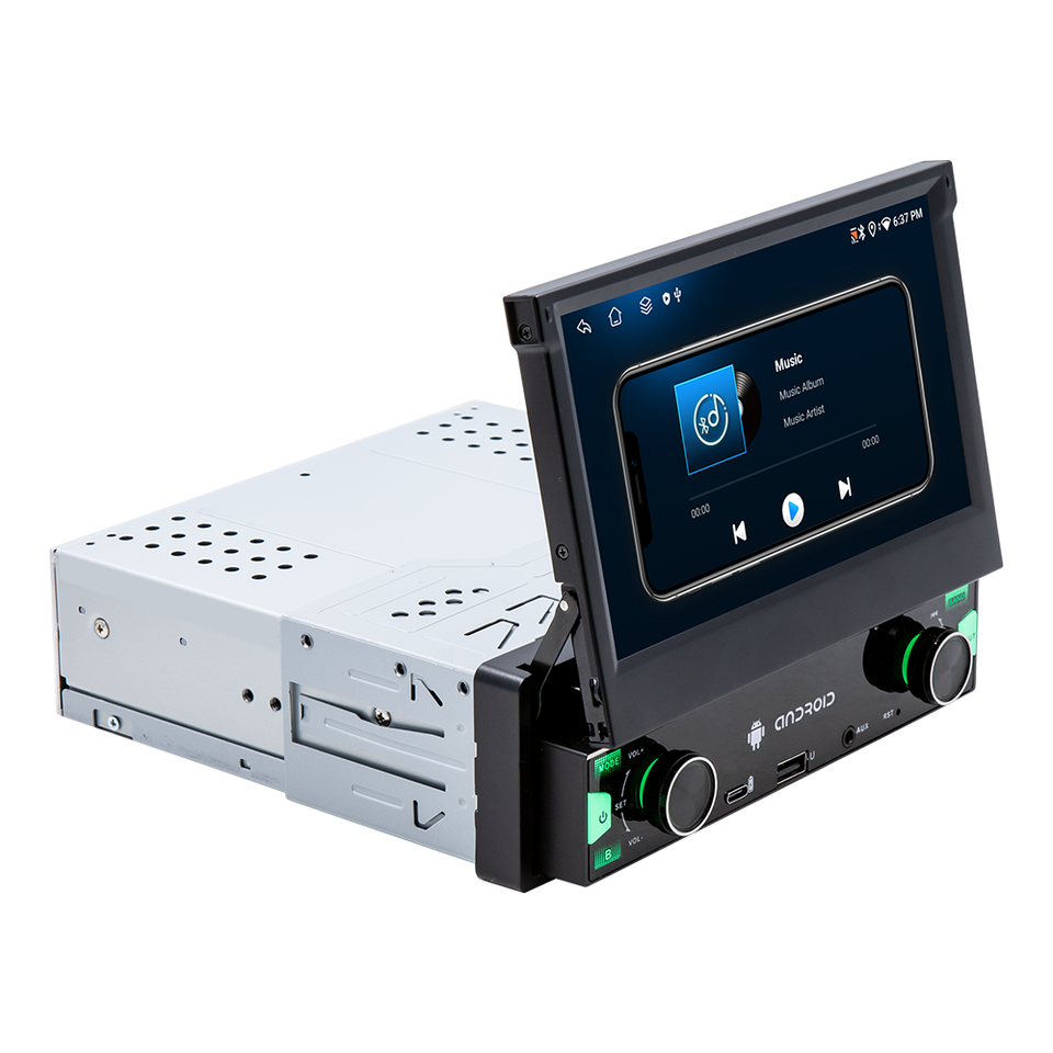 BQCC 1din Android Stereo Car Radio 7 Inch Touch Screen Retractable IPS Carplay FM AM RDS 4/64GB Vehicle Dashboard Player 1 Year