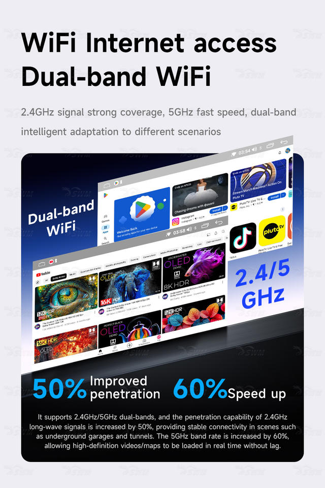 Sans fil, Aux, Usb, Bluetooth, Carte SD, Carte Sim 3G/4G, Construit en WiFi, 5G Carte SimConnexion