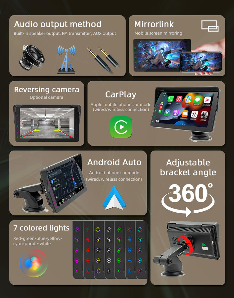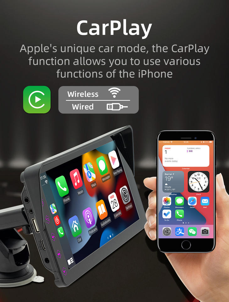 BQCC 7 "IPS HD moniteur Portable sans fil Carplay écran sans fil Android Auto affichage de voiture universel multimédia voiture stéréo