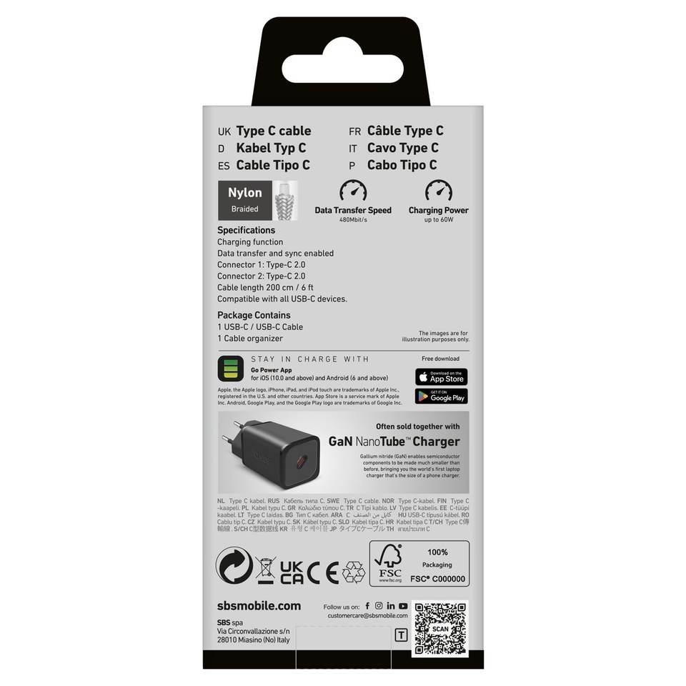 Câble de données USB-C tressé 60W 2m gris TECABLETISSUE2G Cavo