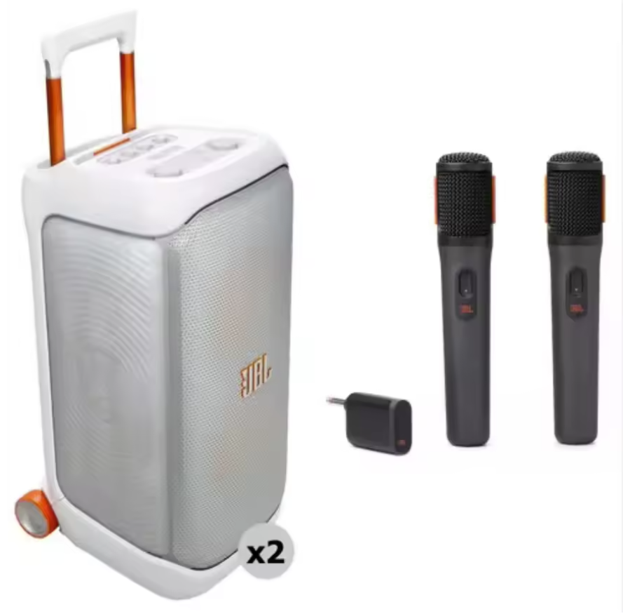 NOUVEAU Kit de Système de Microphone Double Personnes avec Enceintes de Fête Sans Fil Industrielles PartyBox Stage 320 500-800W, LED RGB et Entrées USB/AUX