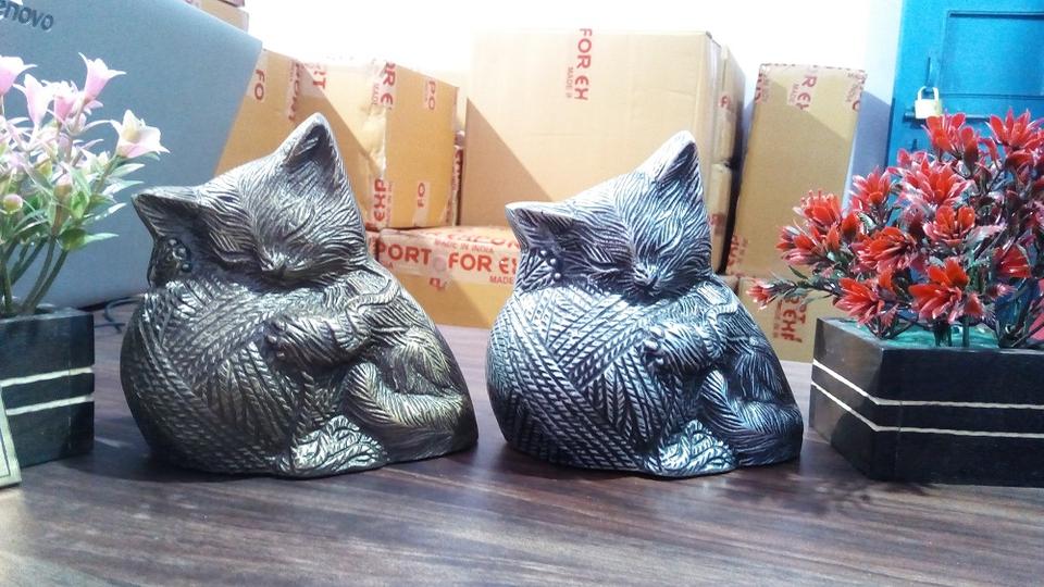 Urne funéraire pour cendres en laiton noir, motif chat assis avec boule, style américain