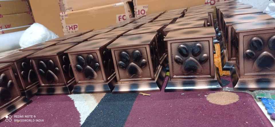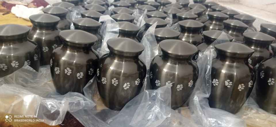 Urne de crémation en laiton noir avec patte en argent pour animaux de compagnie, fournitures commémoratives, cuivworld inde