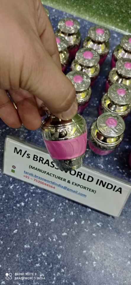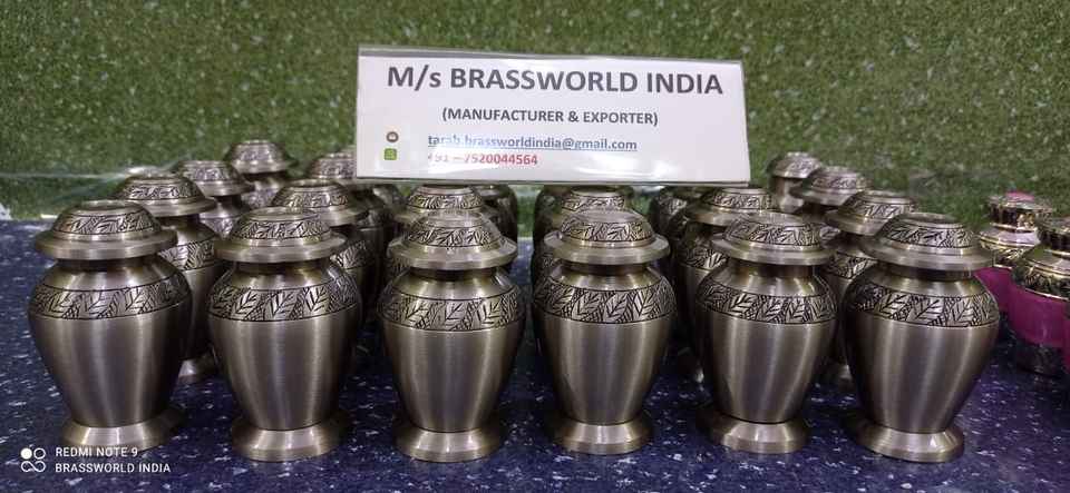 Souvenirs violets entièrement gravés en laiton, fournitures d'enterrement d'urne de crémation, brasworld inde