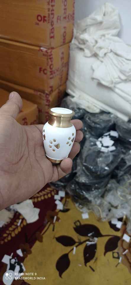 Urne funéraire commémorative en laiton blanc avec patte d'animal gravée dorée, fournitures funéraires, style américain, Brassworld India