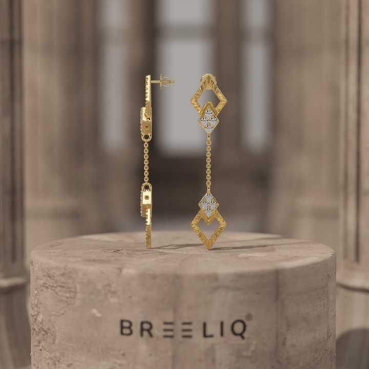 Boucles d'oreilles pendantes BREELIQ en or jaune 14 carats avec breloque ronde, diamant rond taille brillant 0,22 carat VVS2 couleur G, pour anniversaire