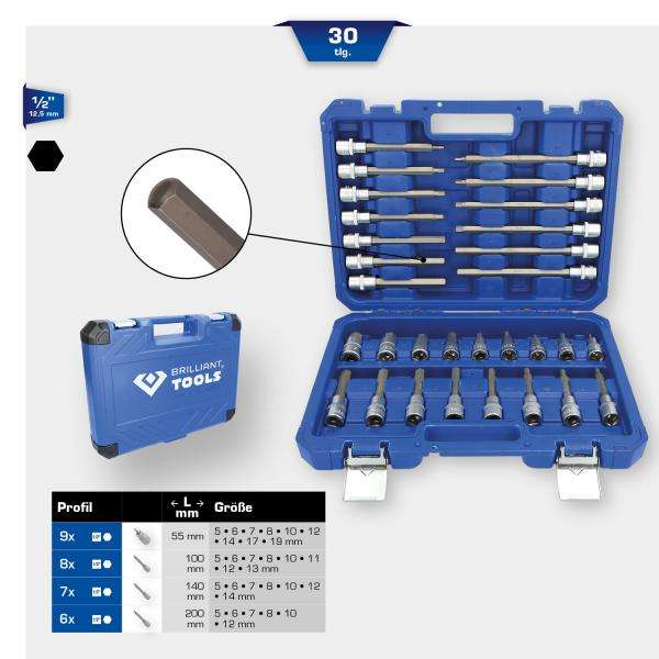 BRILLIANT TOOLS - BT022030 Jeu de douilles hexagonales 1/2 ''(30 pièces) -ENSEMBLES DE CLIQUET ET DE DOUILLES EAN 4042146775905 1/2"