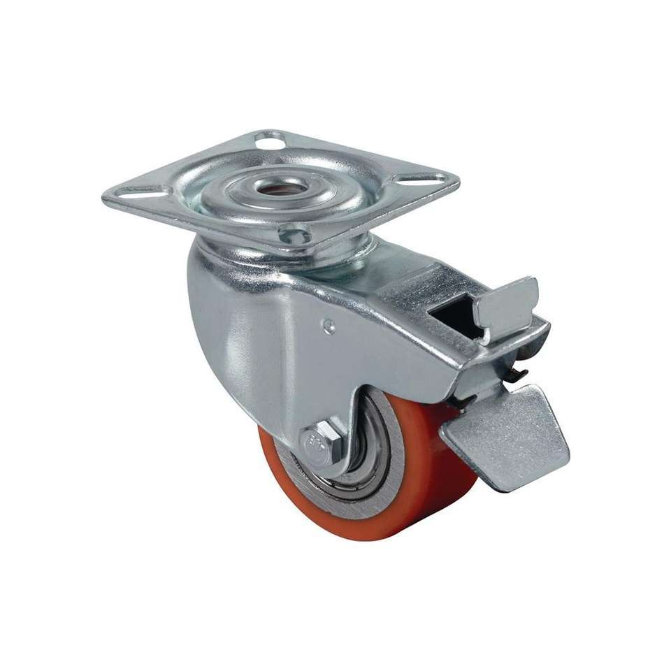 BS Rollen Swivel castor with brake wheel dm 50 mm load cap. 120 kg with compact screw-on plate polyurethane