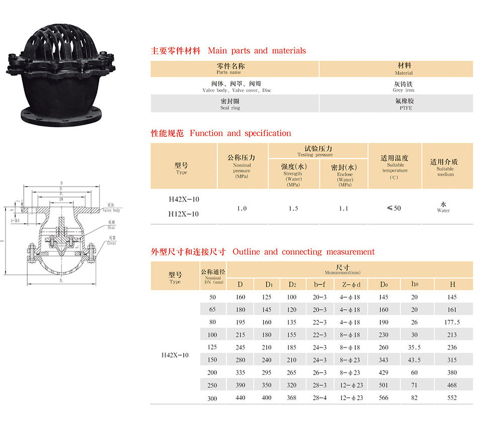 Clapet de pied fileté en fonte grise Standard BS H12X-10 lever le clapet anti-retour à filetage interne pour pompe à eau