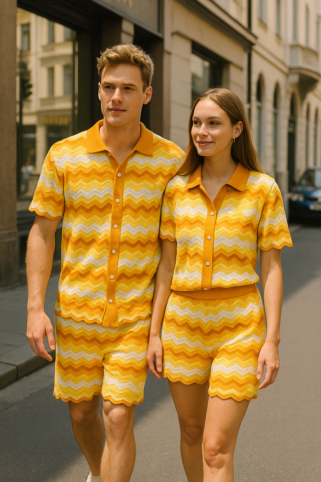 Certification BSCI Chandail Fabricant Personnalisé Hommes 100% Coton Vague Rayé Crochet Crdigan Et Shorts Chandail Ensembles Pour L'été