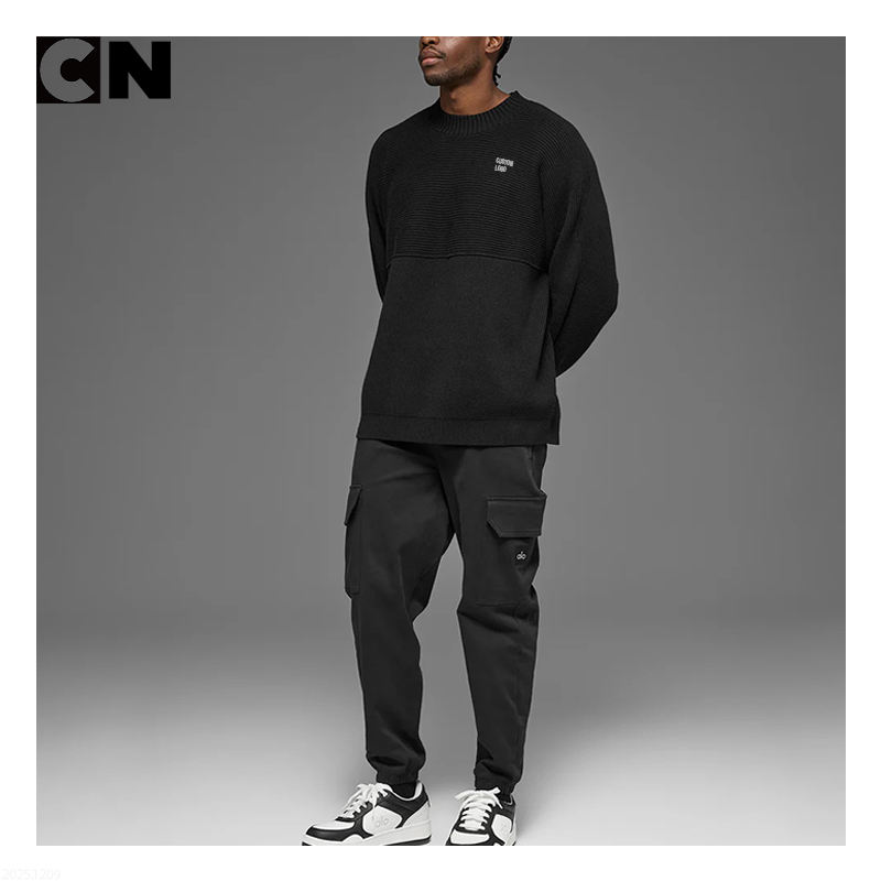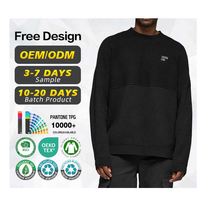 Fabricant de pulls certifié BSCI, logo personnalisé, pull en coton respirant pour homme, coupe classique ample, col rond en tricot côtelé