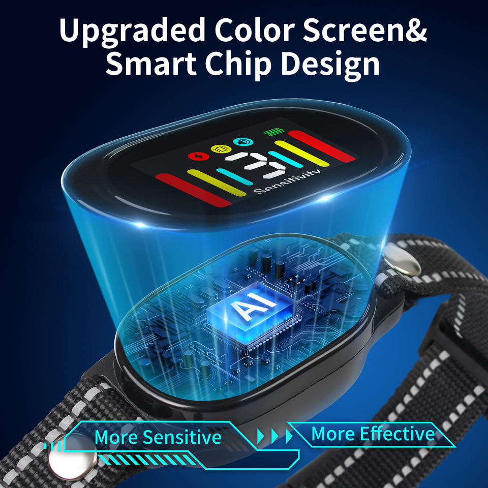 Collier anti-aboiement intelligent à écran couleur étanche IP67, rechargeable, personnalisé, certifié BSCI, pour chien, anti-aboiement automatique