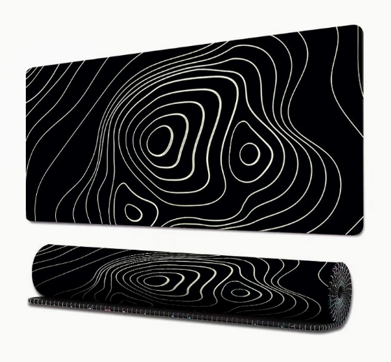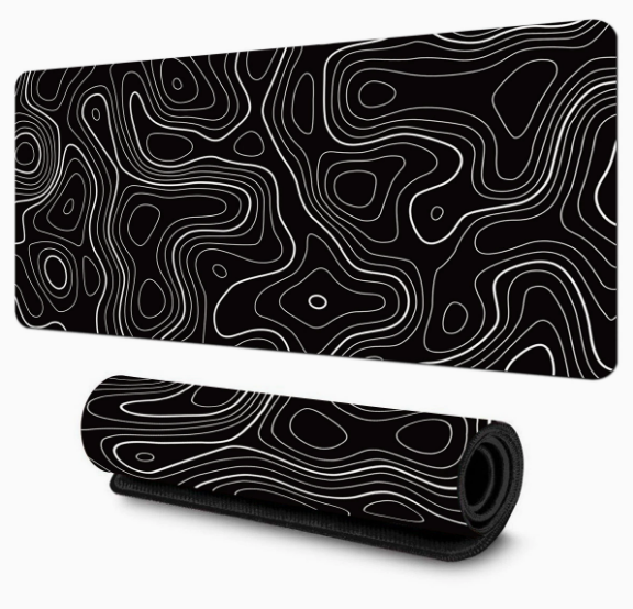 Tapis de souris de jeu grand format certifié BSCI avec carte topographique, tapis de bureau noir avec base en caoutchouc antidérapante et bords surpiqués