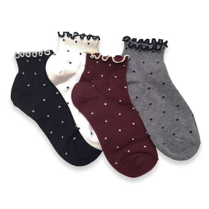 BSCI Chaussettes de cheville à volants en dentelle personnalisées pour femmes à pois Style ODM Chaussettes en coton Fournisseur B2B Commande en gros Fabricant du Vietnam