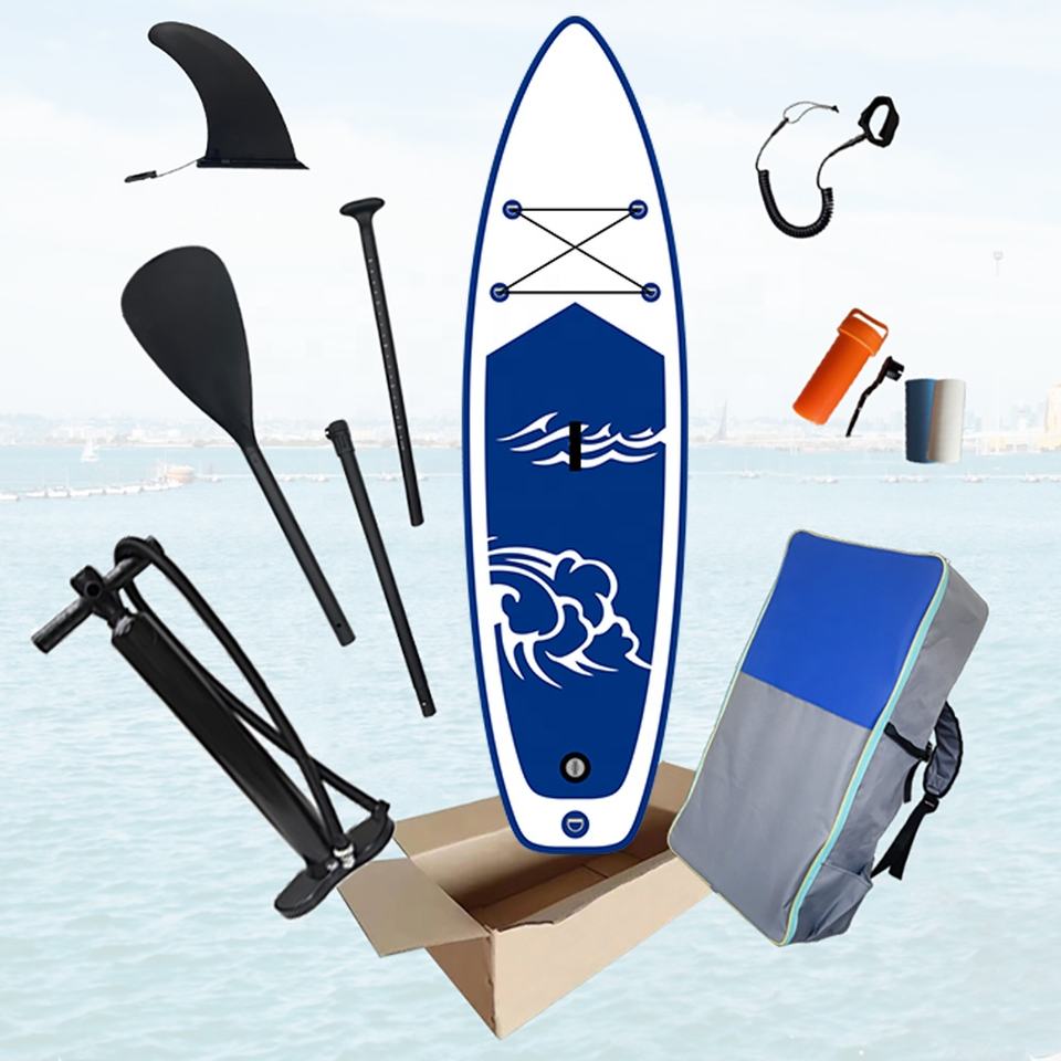 Accessoires standard:Pagaie, pompe à main avec jauge, sac à dos, laisse, palmes et kit de réparation