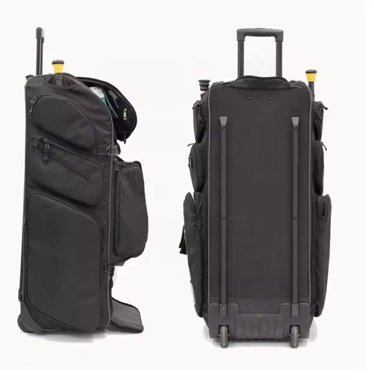Sac de sport à roulettes personnalisé pour équipement de cricket, fabriqué en usine BSCI, robuste, avec accessoires, sac de voyage à roulettes