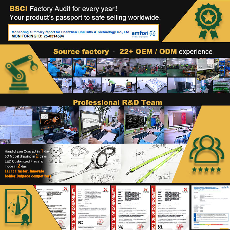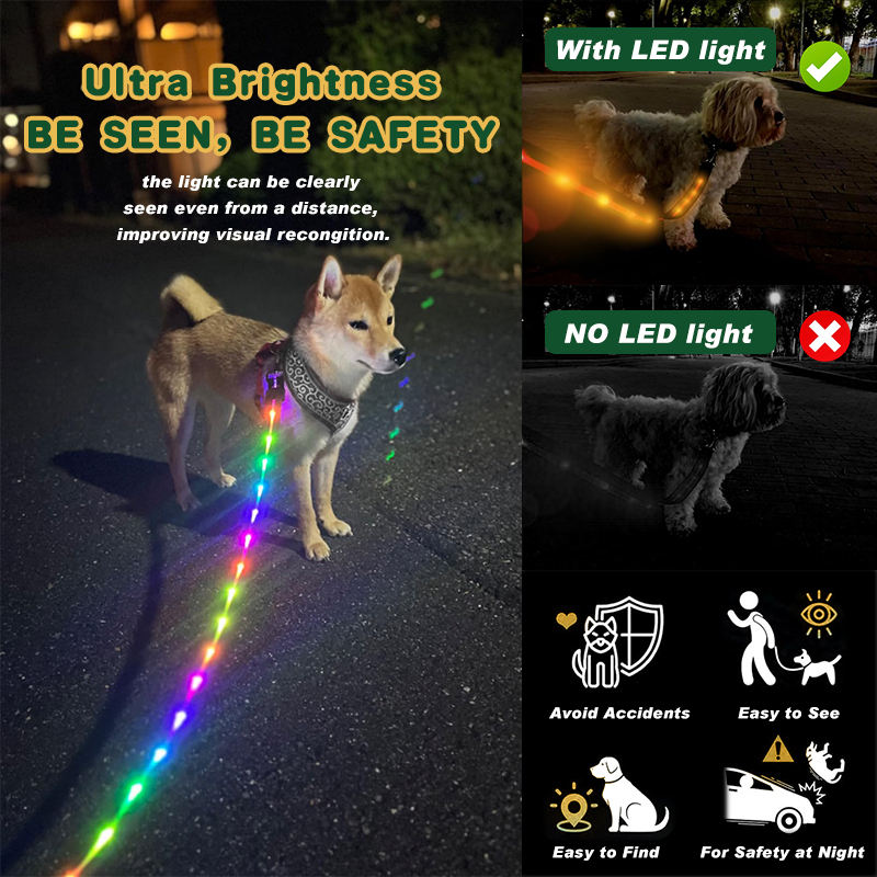 Collier et laisse pour chien avec LED et chargement USB-C, étanche, personnalisé, de qualité supérieure, certifié BSCI, avec extension, pour la sécurité nocturne et la promenade des animaux