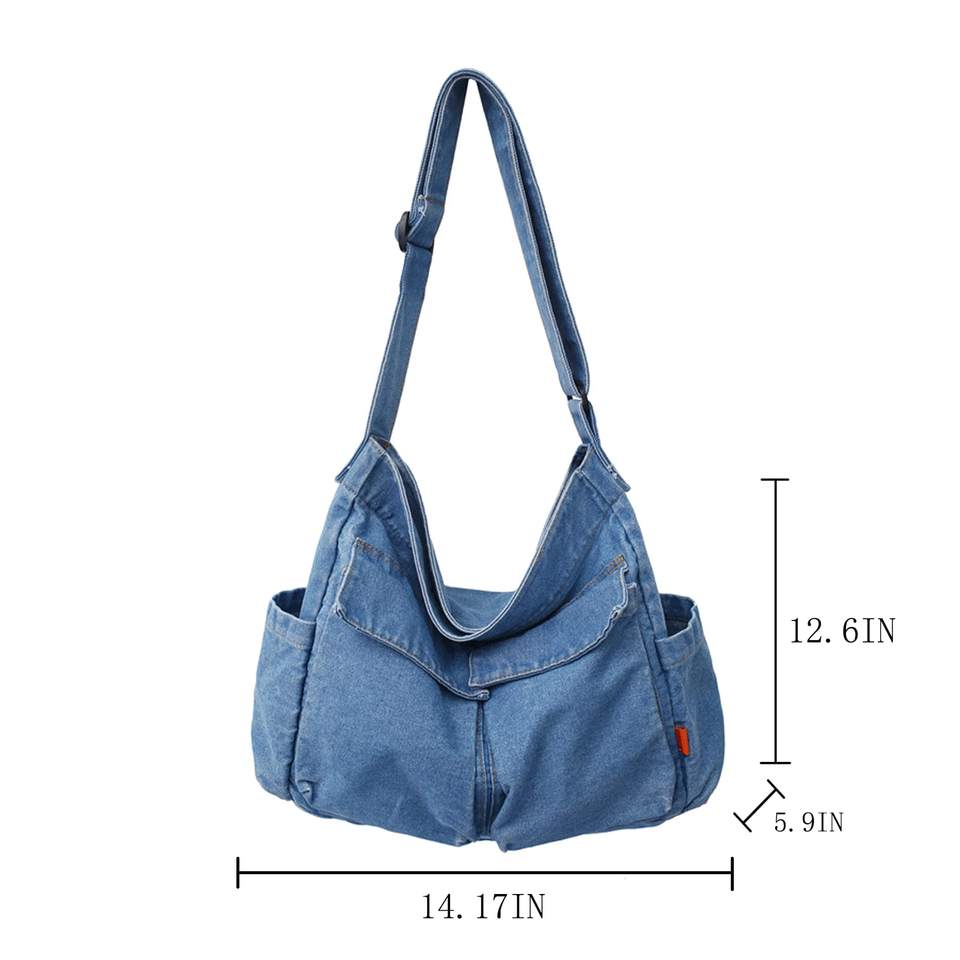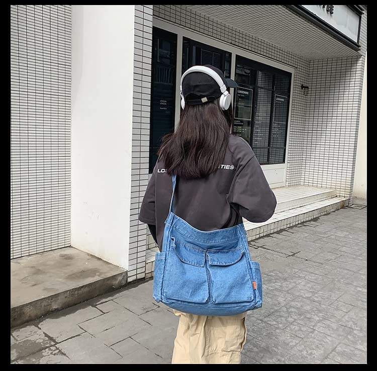 Usine BSCI sacs à bandoulière en toile denim grande capacité style sac de messager décontracté pour garçons et filles étudiants adolescents