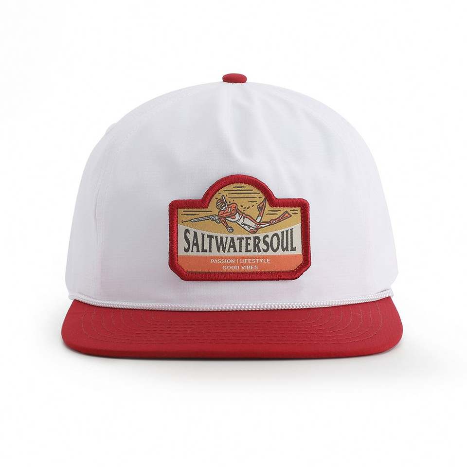 BSCI usine en gros personnalisé de haute qualité 5 panneaux en nylon blanc non structuré plat Bill tissé Patch Logo corde Snapback casquettes chapeau