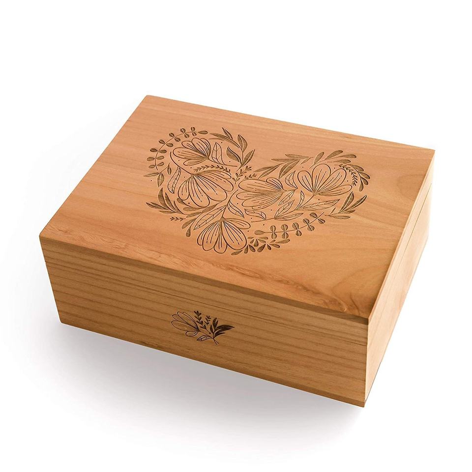 Usine BSCI Coffrets cadeaux en bois Gravure au laser avec fleurs et feuilles Boîte à bijoux personnalisée Boîte à souvenirs en bois