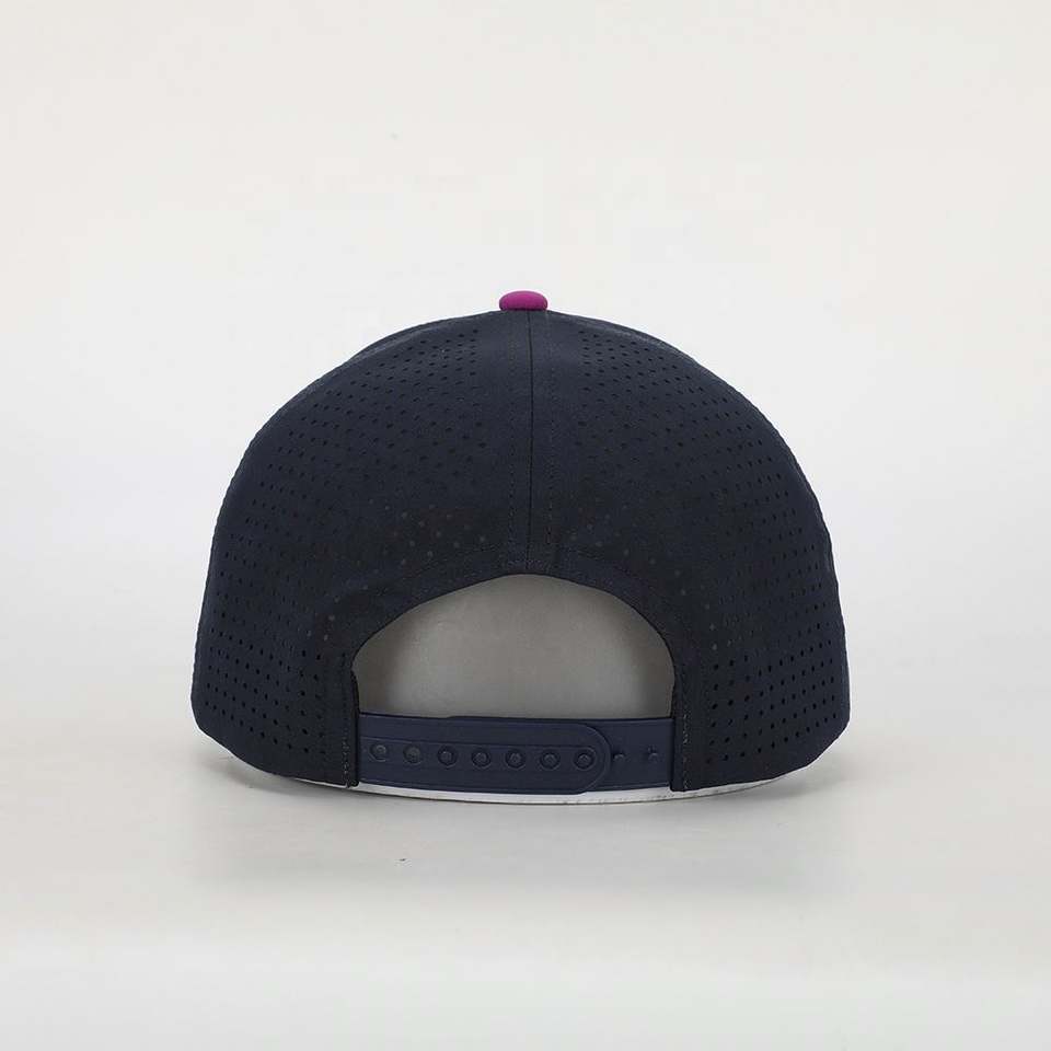 BSCI Wholesale Custom Digital Printed Logo High Quality 6 Panel Dad Hat Navy Blue Polyester Gorras Laser Cut Hole Baseball Cap