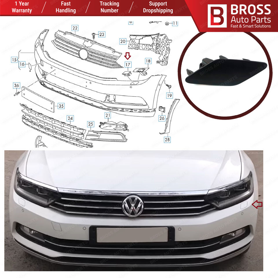 BSP1019-1 Pare-chocs avant Lave-phares Couverture Avant Gauche Côté 3G0807937, 3G0807937GRU