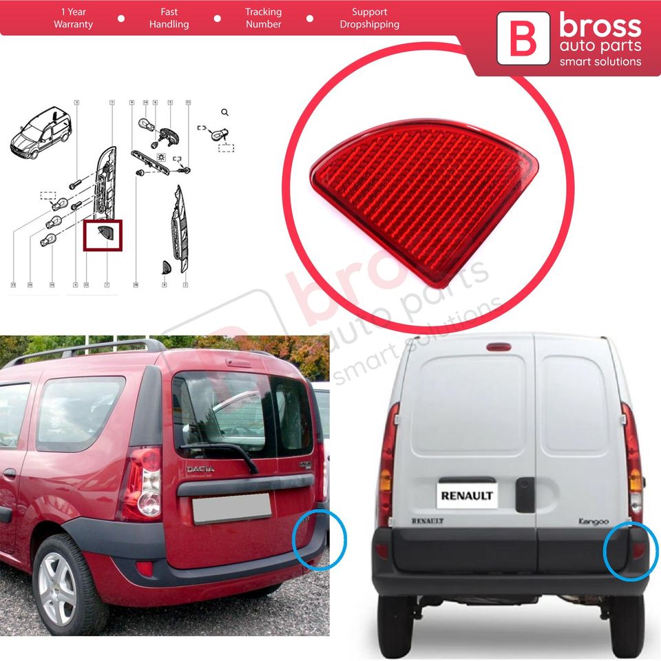 Réflecteur réflexe de pare-chocs arrière droit BSP1236-2 pour Kangoo MK1 Express Kubistar X76 Logan MK1 KS MCV Van 2004-2008