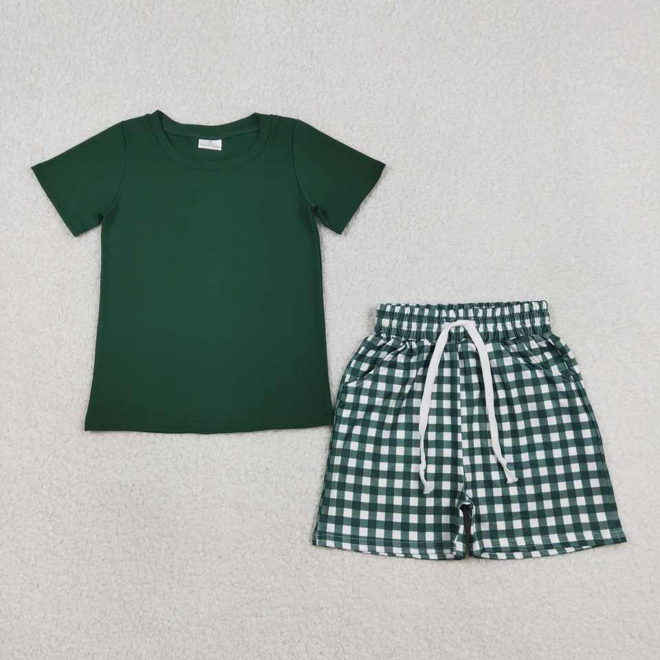BSSO1885 RTS Boutique Ensemble de vêtements pour bébé garçon vert uni, tenues d'été, ensemble en gros