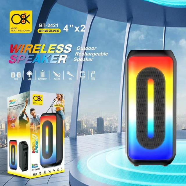 BT-2421 Extra Bass avec amplificateur intégré, haut-parleur de karaoké double 4 pouces RGB Bluetooth avec micro pour fête familiale KTV