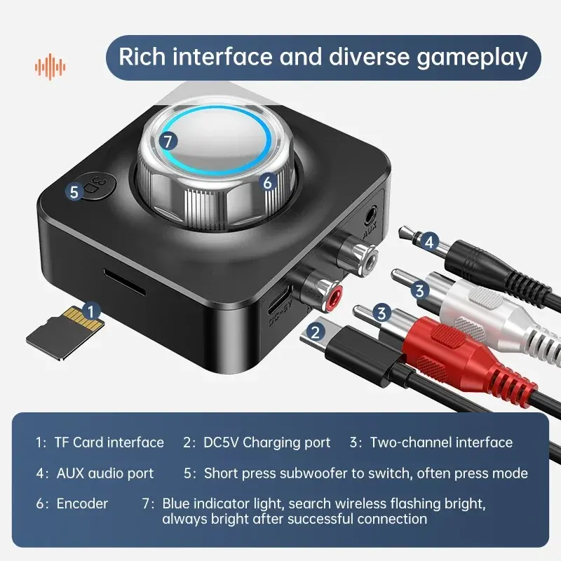 BT 5.0 Récepteur Audio 3D Stéréo Musique Adaptateur Sans Fil Carte TF RCA 3.5mm 3.5 AUX Jack pour Voiture Haut-Parleur Amplificateur Casque