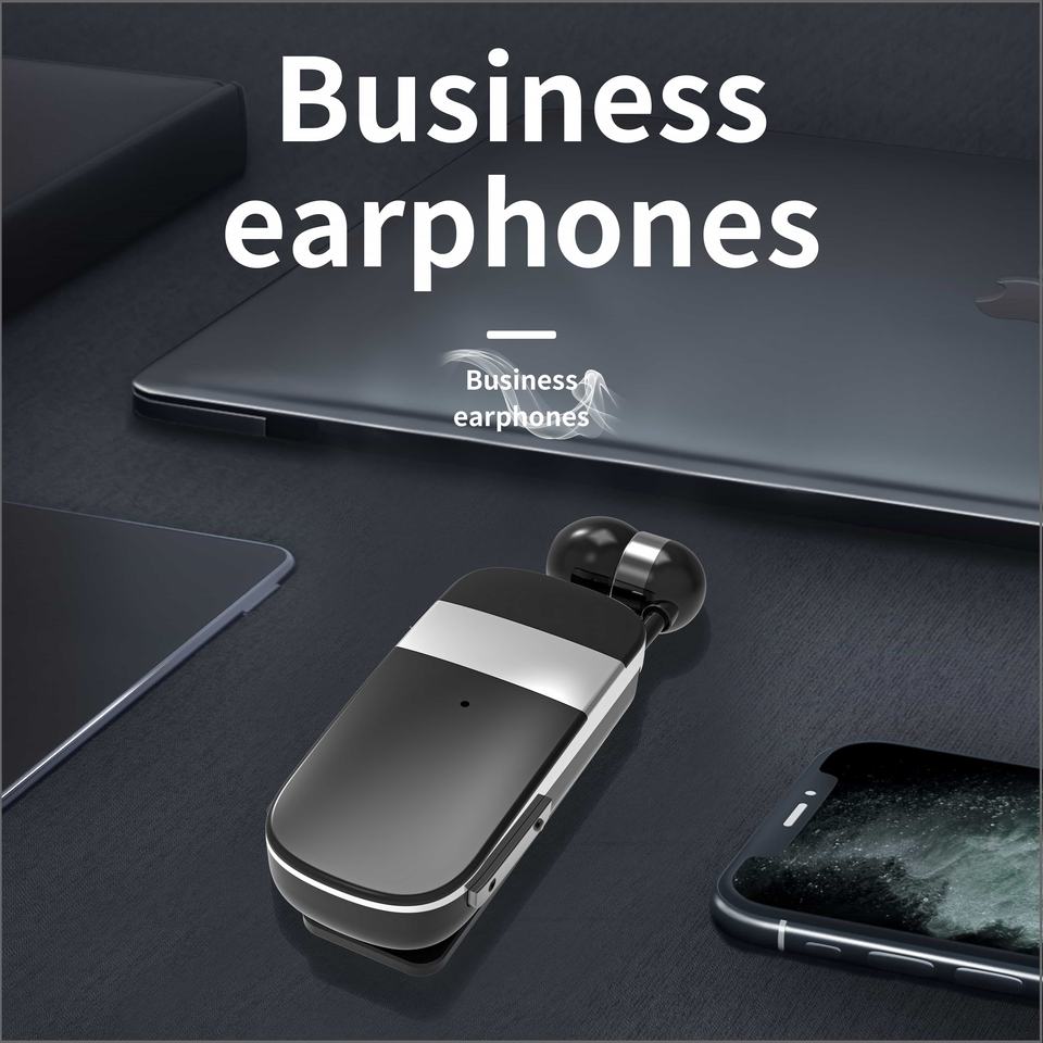 Casque d'écoute sans fil BT 5.2 Oreille unique à clipser Écouteur rétractable Mains libres Vibration Appel Rappel pour la conduite d'entreprise