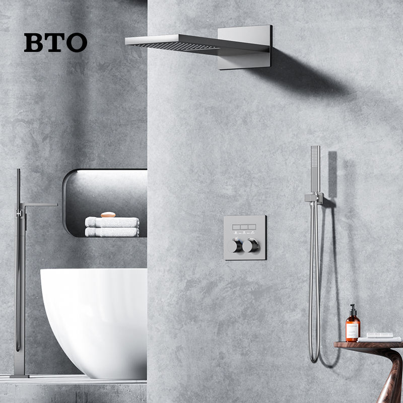 Douche BTO Gun Grey cachée cachée dans le mur incrustation encastrée rangée murale cachée ensembles de salle de bain douche