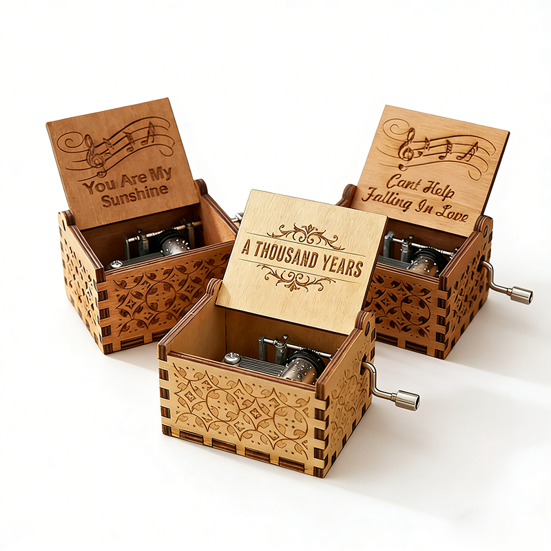 Boîte à musique personnalisée en bois gravée au laser avec manivelle
