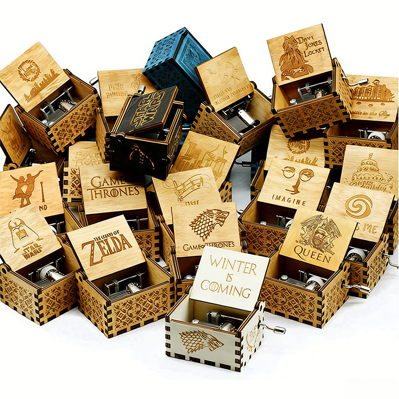 Nom du produit:Boîte à musique personnalisée en bois gravée au laser avec manivelle