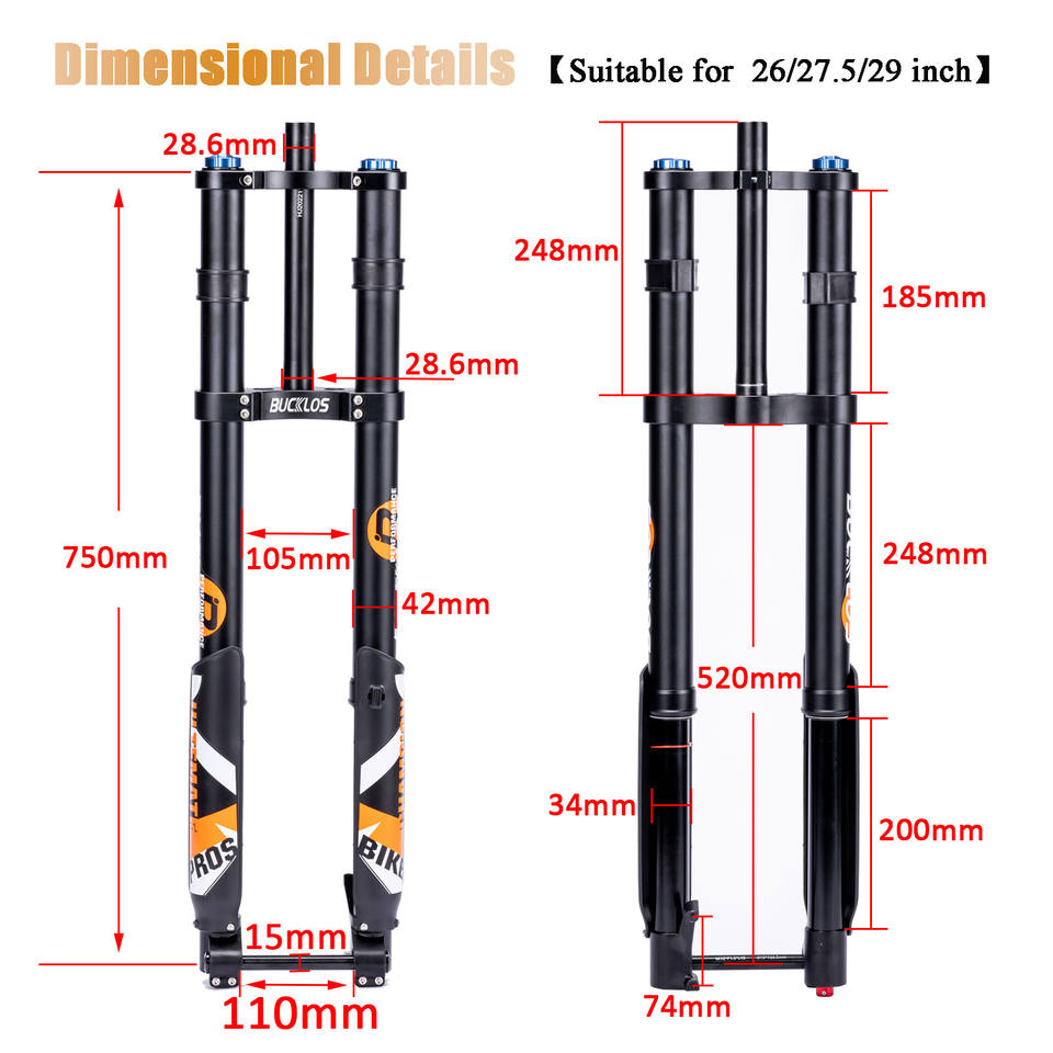 Fourche inversée BUCKLOS pour VTT 29 pouces, fourche inversée à double couronne pour VTT électrique, fourche de vélo en alliage d'aluminium
