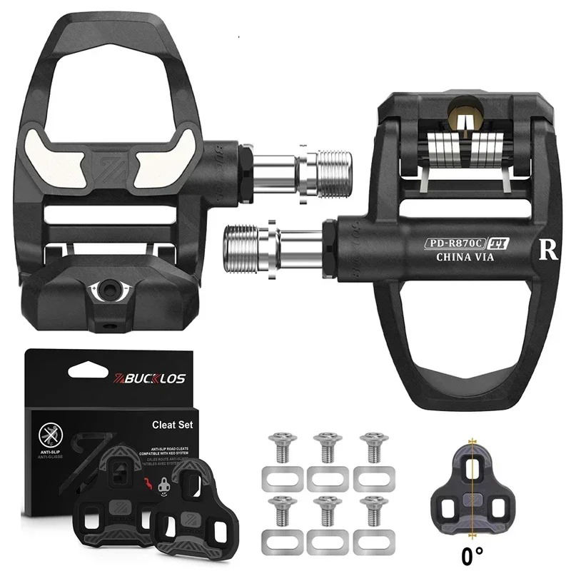 BUCKLOS Road Bike Pedal Carbon/Nylon Bicycle Self-Locking Pedal Bearing Clipless Cycling Cleat Pedal