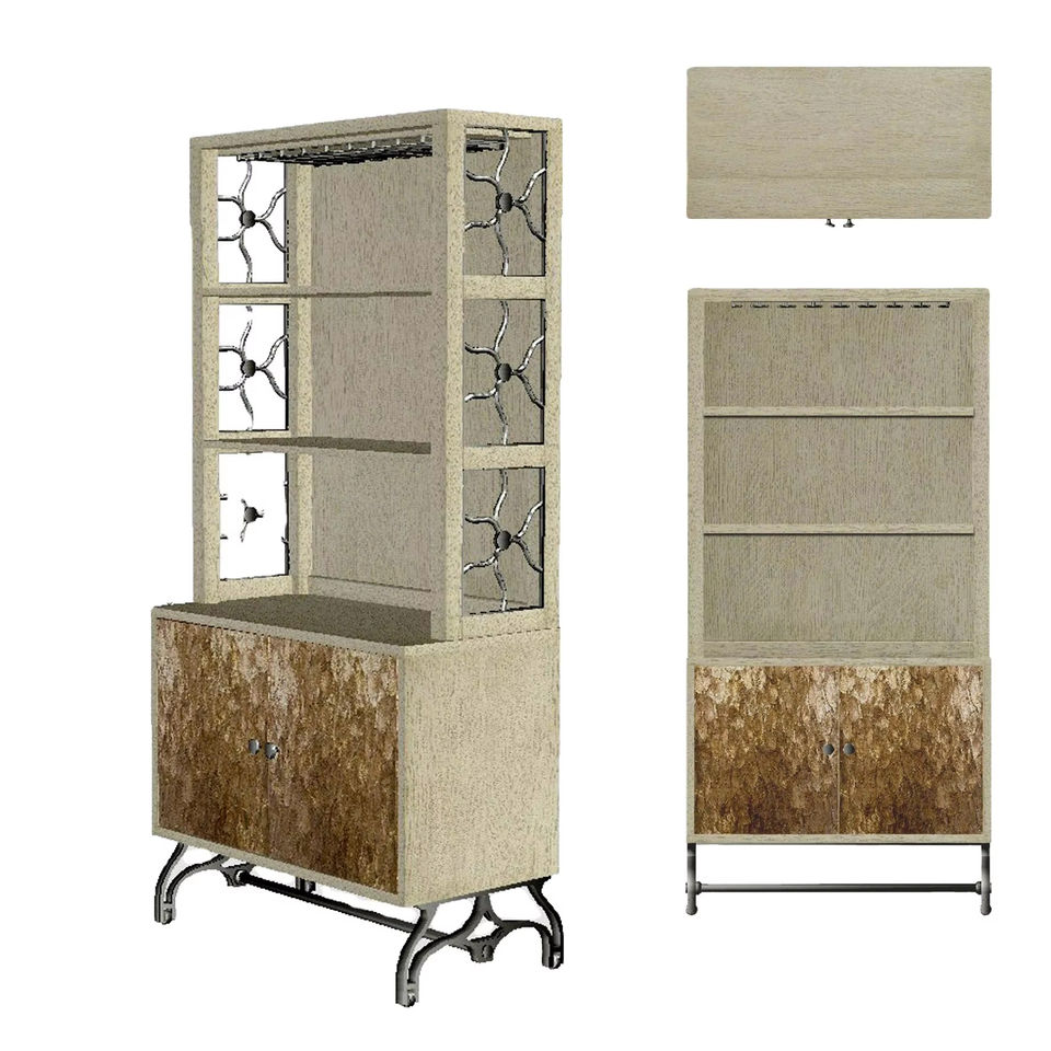 Description:Buffet et buffet en finition vieillie gris blanc peint.