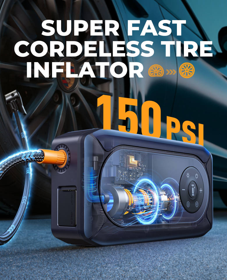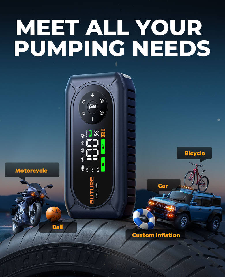BUTURE BC02 5500A Démarreur de voiture Pompe à air 150PSI Batterie externe Démarreur de voiture portable Démarreur de voiture d'urgence