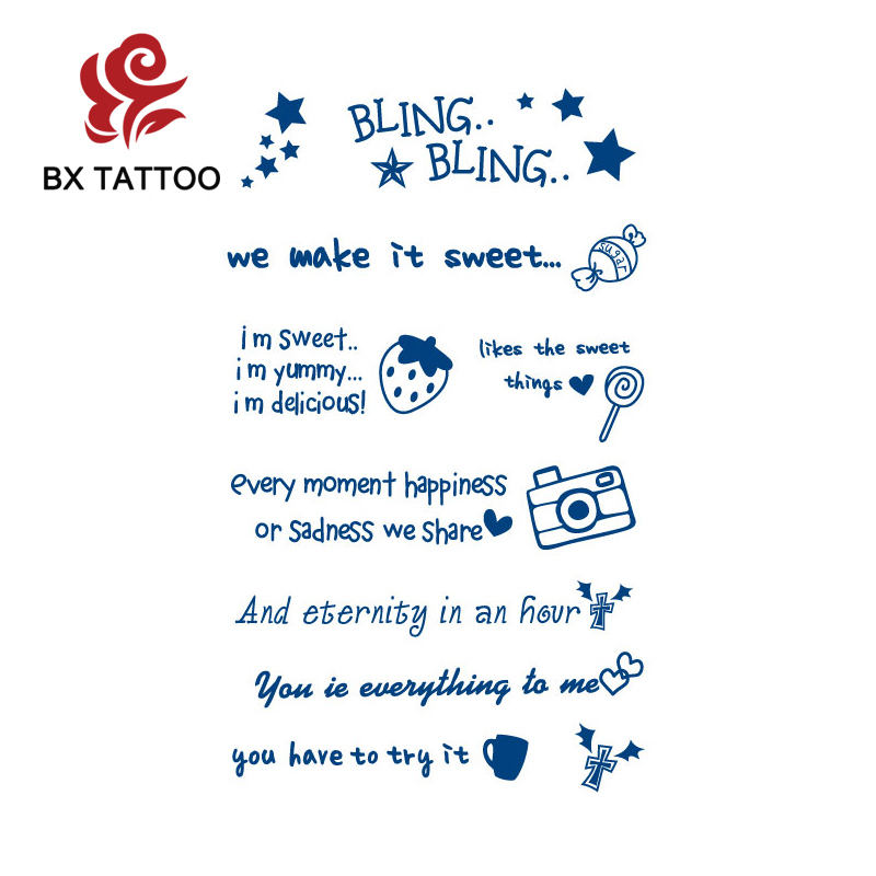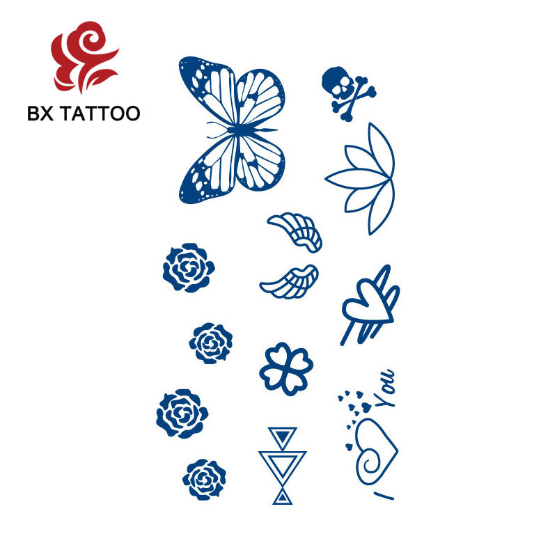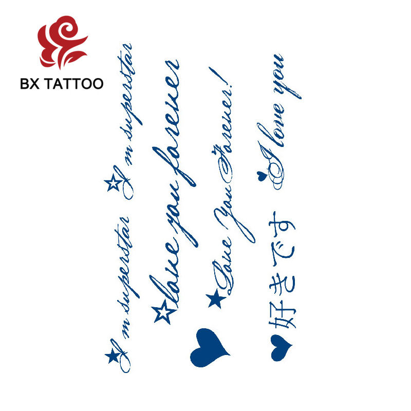 Tatouages semi-permanents BXTAT au jus de Genipa bleu, textes « Je t'aime pour toujours », émoticônes pour fêtes d'enfants, petites roses, papillons GZ241 à 246