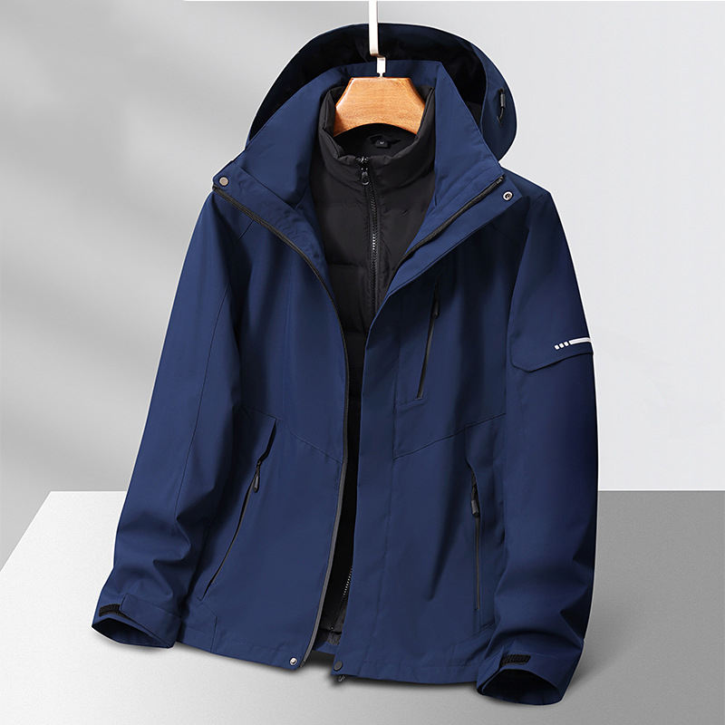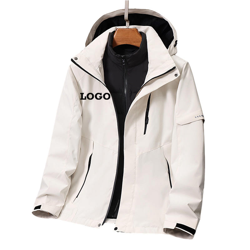 Veste coupe-vent 3 en 1 personnalisée grande taille hiver BY66001-2, en duvet de canard, avec doublure amovible, imperméable et fermeture éclair.